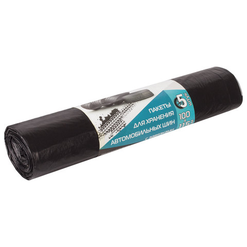 Мешки для автошин до R19, комплект 5 шт., ПВД, завязки, 100х115 см, 35 мкм, черные, "Концепция быта", 3248