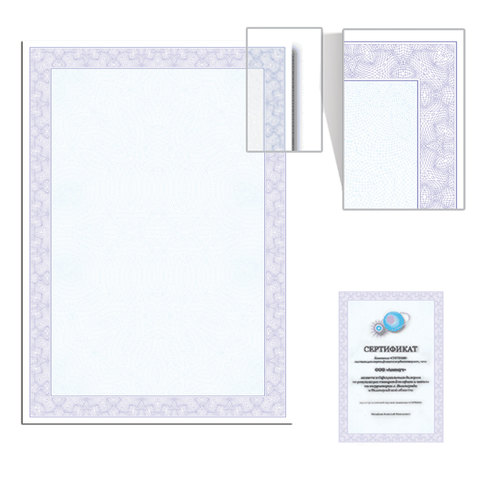 Бумага предназначена для изготовления сертификатов, грамот, дипломов, памятных и других важных документов. Наличие микропечати сделает ваш документ неповторимым.