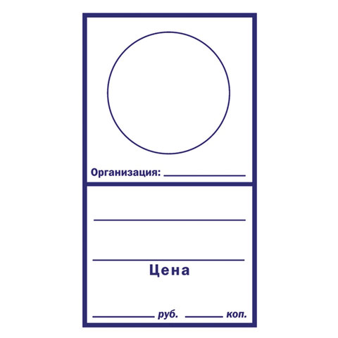Ценник из плотной бумаги, с отверстием для бутылочного горлышка. Содержит поля для нанесения информации о фирме, наименовании и цене.