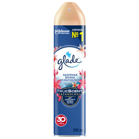 Освежитель воздуха аэрозольный 300 мл, GLADE "Лазурная волна и магнолия", 864950