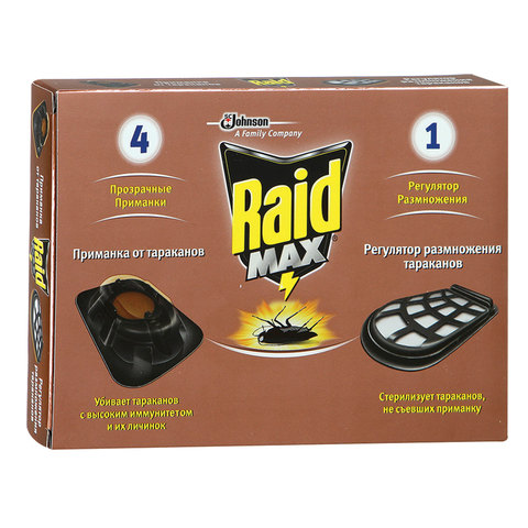 Средство от насекомых RAID (Рейд), от тараканов, регулятор размножения 1 шт. + приманка 4 шт., 636828