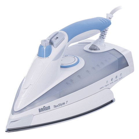 Утюг BRAUN TS765A, 2400 Вт, антипригарное покрытие, самоочистка, белый/голубой
