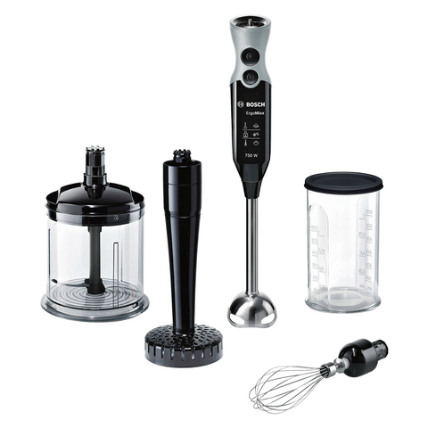 Блендер погружной BOSCH MSM67165RU, 750 Вт, 12 скоростей, измельчитель 0,6 л, венчик, черный