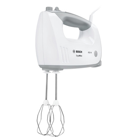Миксер BOSCH MFQ36440, 450 Вт, 5 скоростей, 2 венчика, 2 крюка для теста, серый