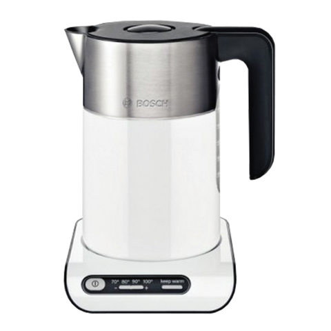 Чайник BOSCH TWK8611P, 1,5 л, 2400 Вт, закрытый нагревательный элемент, нержавеющая сталь, белый