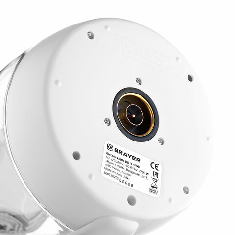 Чайник BRAYER BR1013WH, 1,8 л, 2200 Вт, закрытый нагревательный элемент, стекло, белый