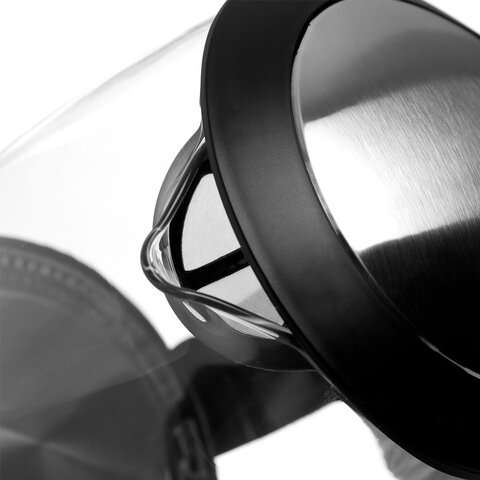 Корпус изготовлен из высокопрочного термостойкого стекла. В носик встроен фильтр для защиты от накипи.