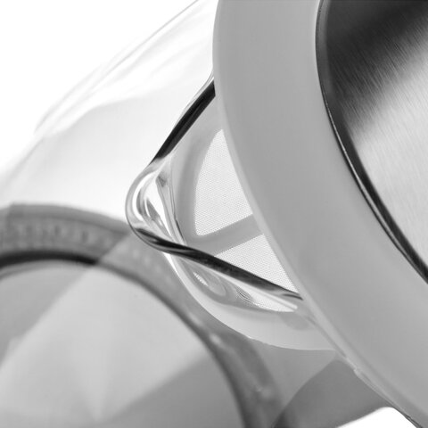 Корпус изготовлен из высокопрочного термостойкого стекла. В носик встроен фильтр для защиты от накипи.