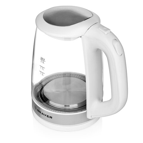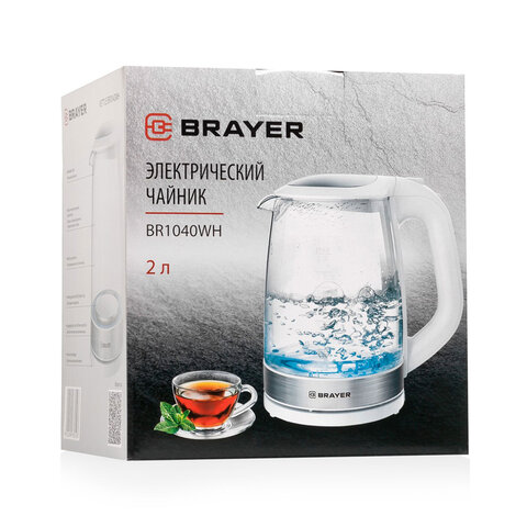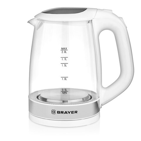 Чайник BRAYER BR1040WH, 2 л, 2200 Вт, закрытый нагревательный элемент, стекло, белый