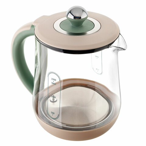 Объём чайника составляет 1,5 л, что делает его оптимальным выбором для семьи или небольшого рабочего коллектива.