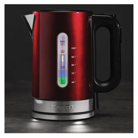 Чайник SCARLETT SC-EK21S78, 1,7 л, 2200 Вт, закрытый нагревательный элемент, ТЕРМОРЕГУЛЯТОР, сталь, бордовый