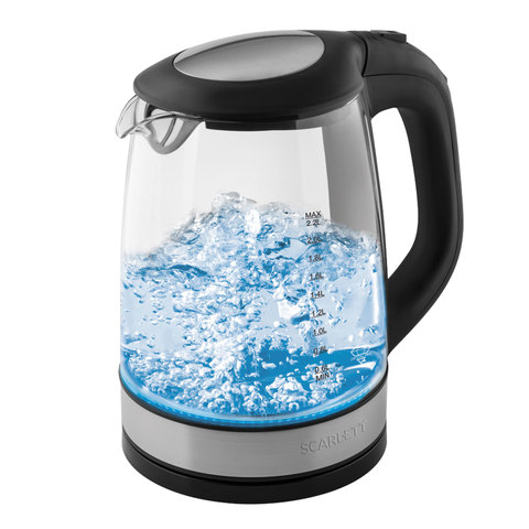 Чайник SCARLETT SC-EK27G19, 2,2 л, 2200 Вт, закрытый нагревательный элемент, стекло, черный, SC - EK27G19