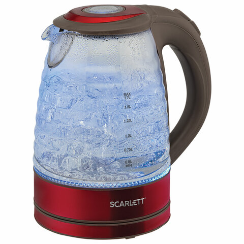 Чайник SCARLETT SC-EK27G62, 1,7 л, 2200 Вт, закрытый нагревательный элемент, стекло, красный
