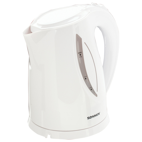 Чайник SONNEN KT-1758, 1,7 л, 2200 Вт, закрытый нагревательный элемент, пластик, белый, 453415