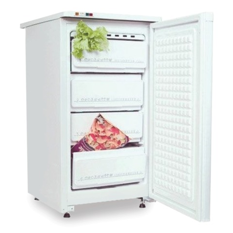 Узкий морозильник-шкаф Саратов 154 (МШ-90) шириной 48 см и высотой 88 см позволяет хранить замороженные продукты при температуре минус 18 градусов, замораживать кубики льда и свежие продукты питания. Оснащен 4 выдвижными ящиками и отделением для льда.