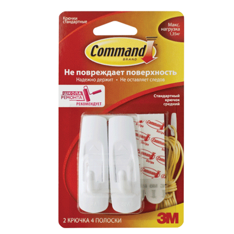 Самоклеящиеся легкоудаляемые крючки Command® оригинальной конструкции из пластика подойдут для размещения одежды, полотенец, кухонной утвари, элементов декора и различных аксессуаров. Время бесследного удаления не ограничивается.