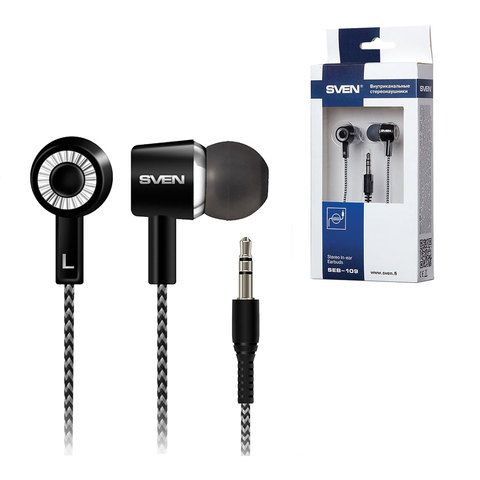 Наушники SVEN SEB-109, проводные, 1,2 м, стерео, вкладыши, черные с серым, SV-013752