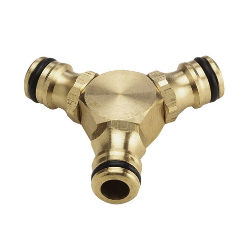 Трехсторонний соединитель из латуни. Для соединения 3 шлангов с помощью коннекторов.