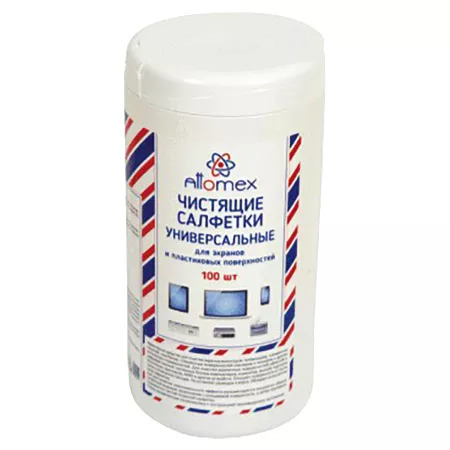 Салфетки для экранов всех типов и пластика универсальные ATTOMEX, туба 100 шт., влажные, 4170900