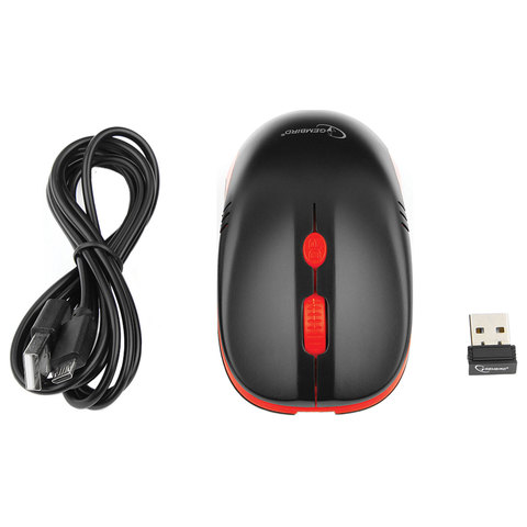 Мышь беспроводная GEMBIRD MUSW-350, USB, встроенный аккумулятор, 3 кнопки + 1 колесо-кнопка, оптическая, черно-красная