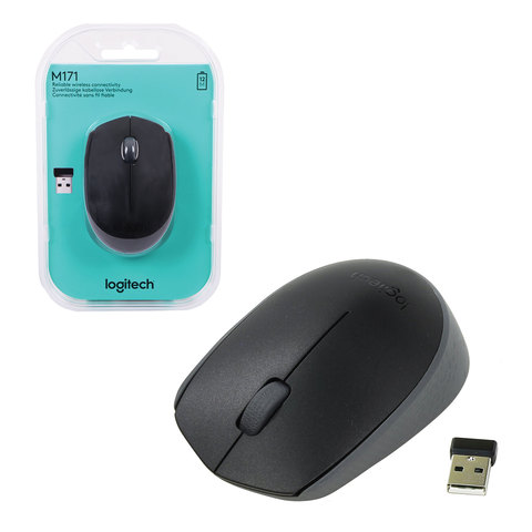 Мышь беспроводная LOGITECH M171, 2 кнопки + 1 колесо-кнопка, оптическая, черная, 910-004424