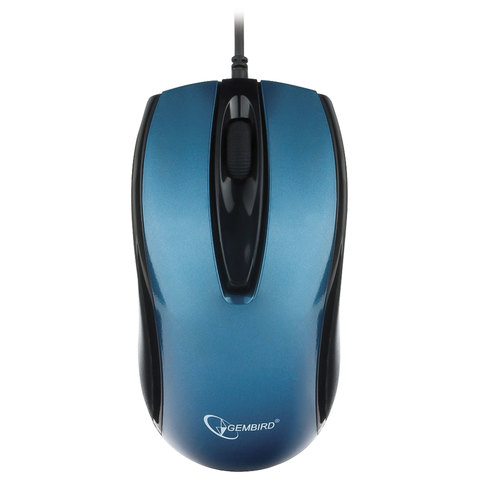 Мышь проводная бесшумная GEMBIRD MOP-405-B, USB, 2 кнопки+1 колесо-кнопка, оптическая, металлик синяя