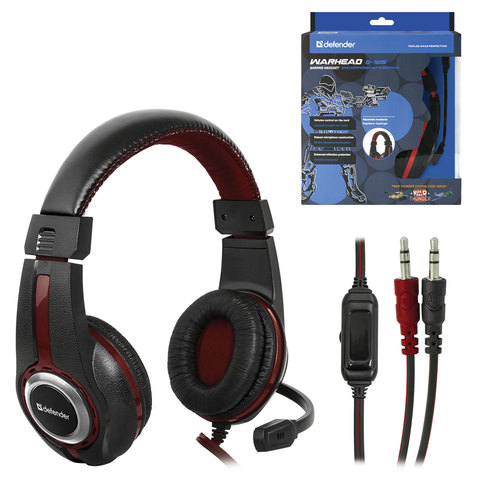 Наушники с микрофоном (гарнитура) DEFENDER Warhead G-185, проводные, 2 м, стерео, чёрно-красные, 64106