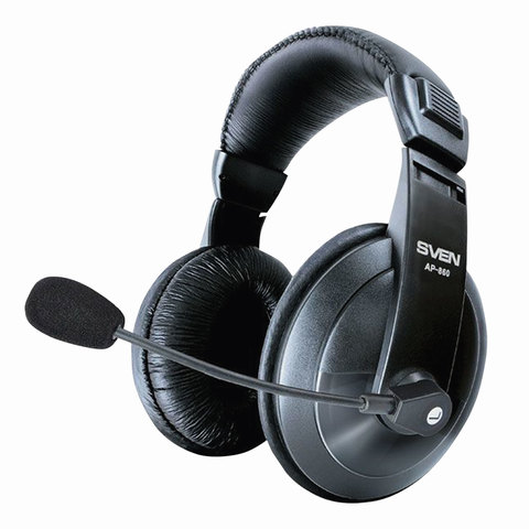 Наушники с микрофоном (гарнитура) SVEN AP-860MV, проводные, 2 м, с оголовьем, черные, SV-0410860