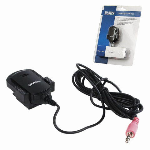 Микрофон-клипса SVEN MK-150, кабель 1,8 м, 58 дБ, пластик, черный, SV-0430150