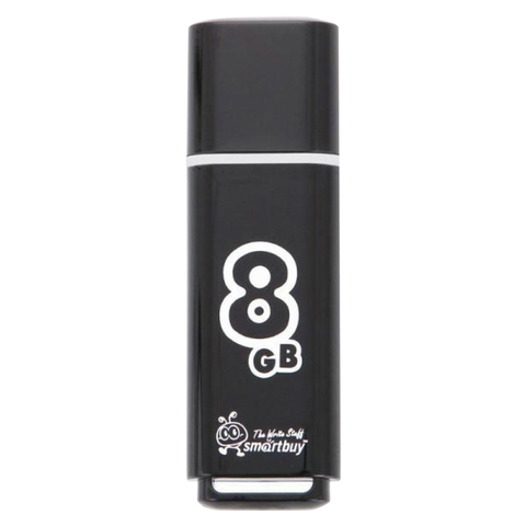 Флэш-диск 8GB SMARTBUY Glossy USB 2.0 выполнен в классическом дизайне из прозрачного пластика черного цвета и комплектуется специальной системой для крепления колпачка — с помощью скобки он фиксируется между двумя выступающими пластинками на устройстве.