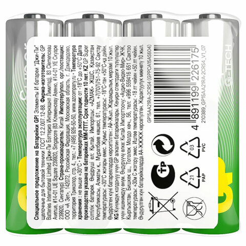 Батарейки GP – это надежные элементы питания, которые обеспечивают стабильную работу устройств. В процессе изготовления использовались качественные материалы и тщательно соблюдались стандарты безопасности; они оптимально подходит для бытового применения. Неиспользованные батарейки GP могут сохранять заряд до 10 лет при хранении в обычных условиях. С этими батарейками можете полностью положиться на свое устройство. Поставляются комплектом из 4 штук в пленке.