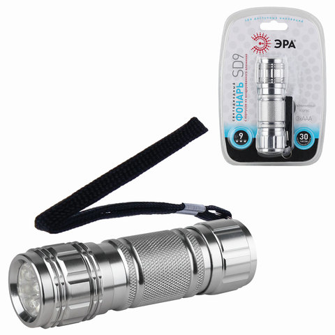 Фонарь светодиодный "ЭРА" алюминиевый SD9, 9xLED, 3хААА (в комплект не входят)