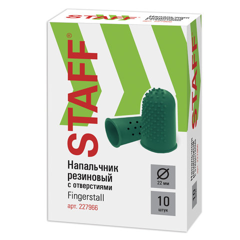 Напальчники резиновые с отверстиями, КОМПЛЕКТ 10 шт., диаметр 22 мм, зеленые, STAFF "EVERYDAY", 227966