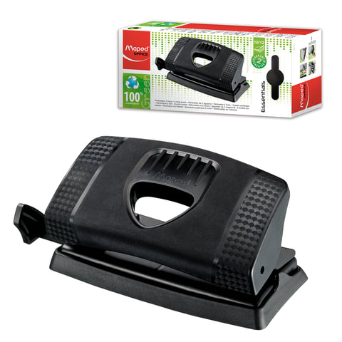 Дырокол MAPED (Франция) "Essentials Green", малый, на 12 листов, "карбоновое покрытие", черный, 451211