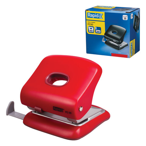 Дырокол RAPID (Швеция) "FC30", пластиковый, на 30 листов, красный, 23639403