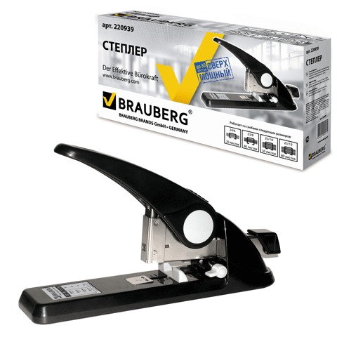 Степлер BRAUBERG "Nutzen", мощный №24/6 - 23/13, на 80 листов, черный, 220939