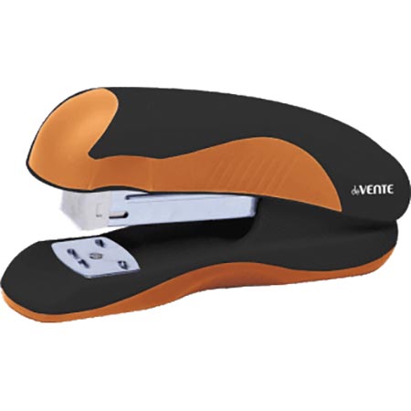 Степлер "deVENTE. MonoChrome" № 24/6 (мощность 20 листов, глубина скрепления 45 мм) пластиковый с каучуковой вставкой, в картонной коробке, черный с неоновым оранжевым