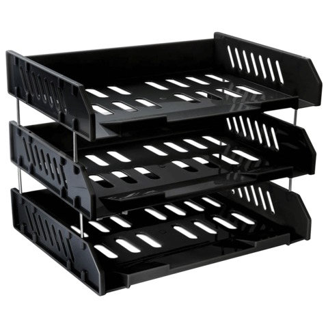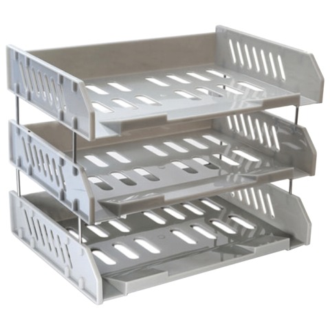 Лотки горизонтальные для бумаг, НАБОР 3 шт. (335х232х280 мм), на металлических стержнях 60 мм, серые, "Сити", ЛТГ-30703