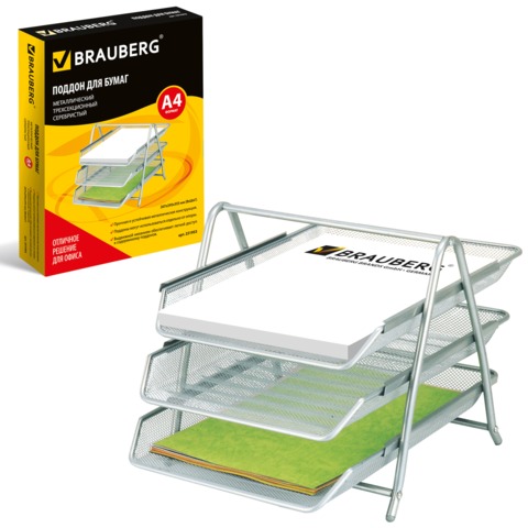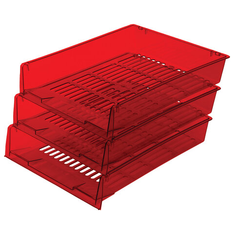Лотки горизонтальные для бумаг, КОМПЛЕКТ 3 шт., 340х270х70 мм, тонированный красный, BRAUBERG "Office", 237260