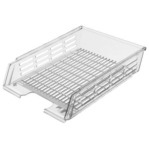 Лоток горизонтальный для бумаг СТАММ с пазами, сетчатый, прозрачный, ЛТ77