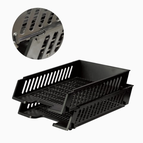 Набор из двух сетчатых лотков. Лотки устанавливаются друг на друга с помощью пазов, предусмотренных конструкцией изделий, образуя этажерку.