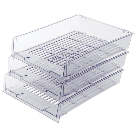 Лотки горизонтальные для бумаг, КОМПЛЕКТ 3 шт., 340х270х70 мм, прозрачный, BRAUBERG "Office", 237258