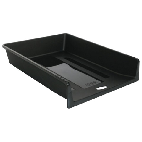 Горизонтальный лоток для бумаг оригинального дизайна, прочный и лёгкий. Приподнятая фронтальная часть лотка облегчает изъятие документов из накопителя. Несколько лотков можно ставить друг на друга как строго прямо, так и со смещением.