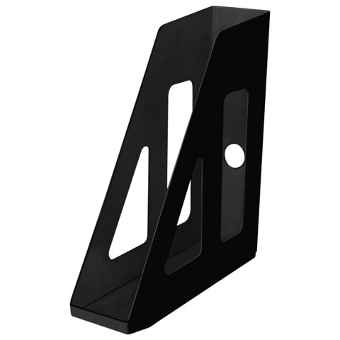 Вертикальный устойчивый лоток для бумаг выполнен в классическом дизайне из высококачественного прочного пластика с гладкой поверхностью. Боковые стенки скошенной формы. Имеется держатель для удобной переноски на торцевой части.