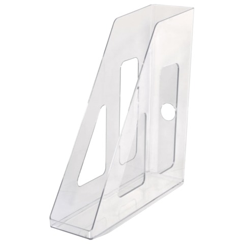 Вертикальный устойчивый лоток для бумаг выполнен в классическом дизайне из высококачественного прочного пластика с гладкой поверхностью. Боковые стенки скошенной формы. Имеется держатель для удобной переноски на торцевой части.