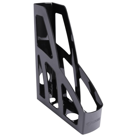 Вертикальный устойчивый лоток для бумаг выполнен в классическом дизайне из высококачественного прочного пластика с гладкой поверхностью. Имеется держатель для удобной переноски на торцевой части.