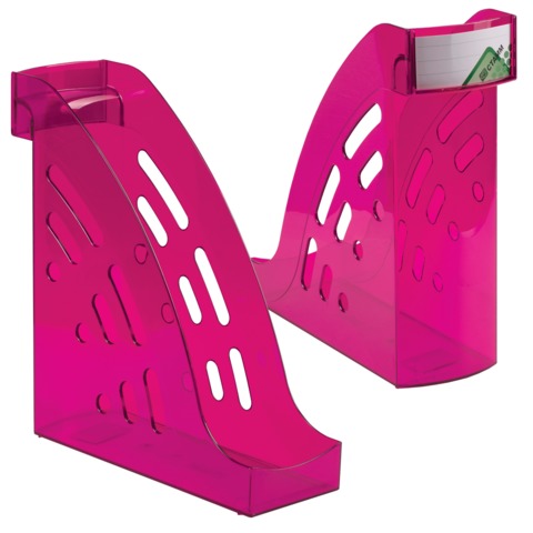 Вертикальный лоток для бумаг в оригинальном дизайне. Фирменные сменные таблички для маркировки. Устойчивый, подходит для хранения тяжёлых папок и каталогов.