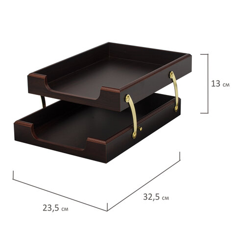 Все предметы изготовлены из дерева цвета "орех" с золотистой фурнитурой. Набор упакован в подарочную коробку, а также дополнительно в защитный гофрокорб для транспортировки.