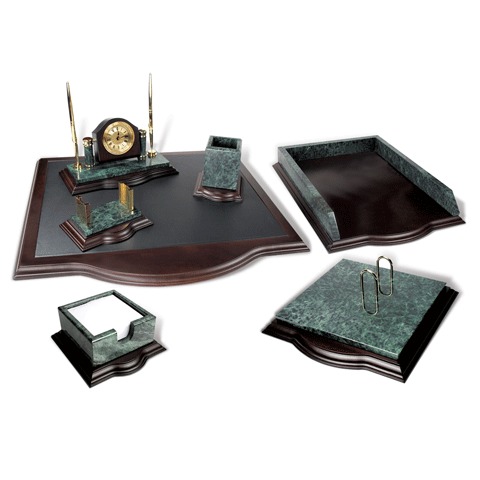 Набор GALANT настольный из мрамора, 7 предметов, зеленый мрамор с золотистой отделкой, красное дерево, часы, 231485