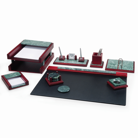 Набор настольный BESTAR "Zeus", мрамор, 8 предметов, двойной лоток, зеленый, красное дерево, 236400